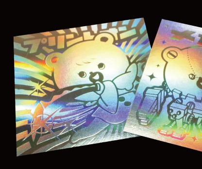で、今回、印刷会社に頼んで、ホログラムレインボーにします。イメージはこんな感じです。